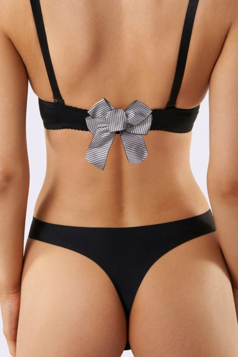 Mašlička v peplitu na zapínání podprsenky je chytrý módní trik, který vám umožní skrýt podprsenku v šiatech s otevřenými zády.