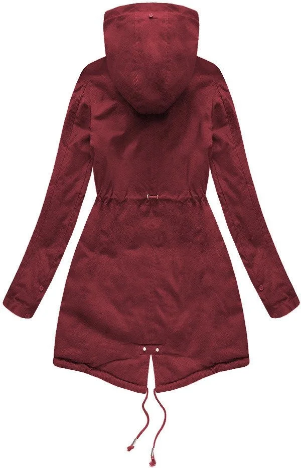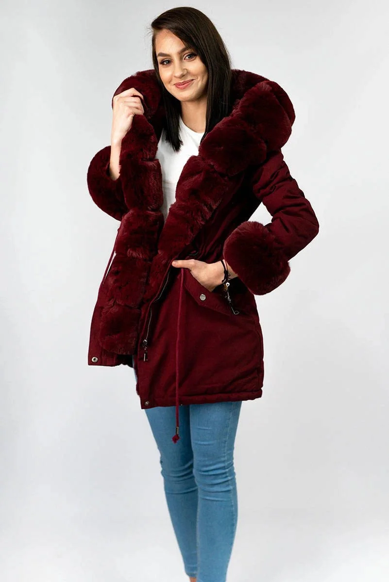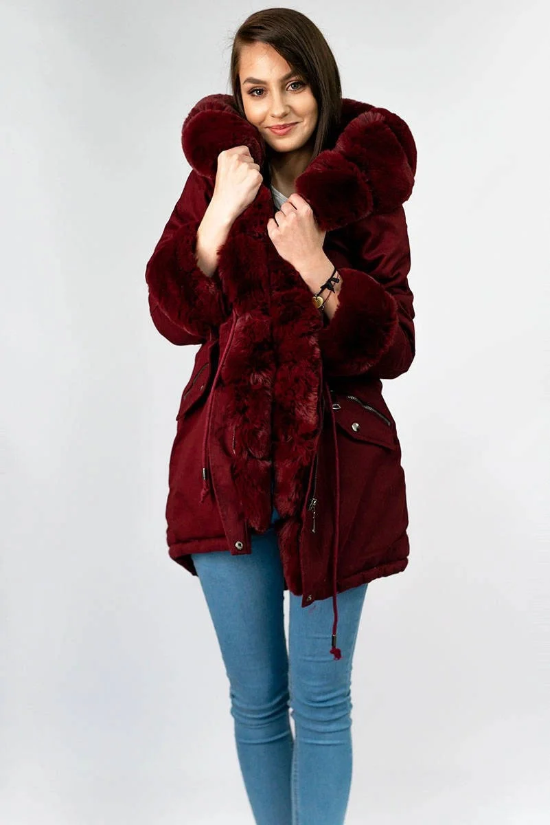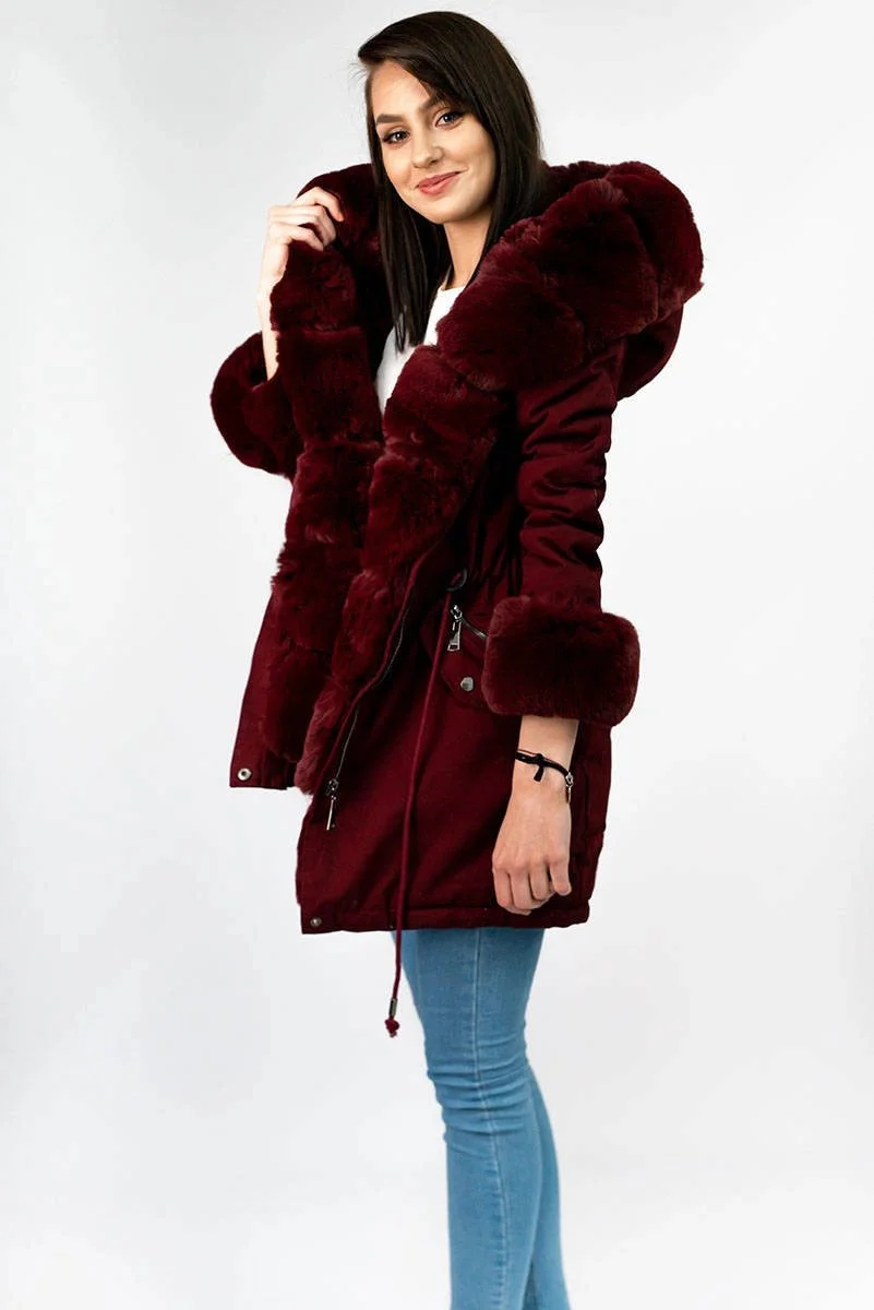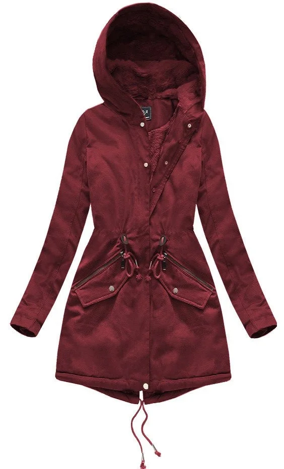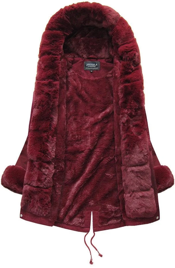 • Bavlněná dámská zimní bunda parka ve vínové bordó barvě s kožešinou (xw801-3x)