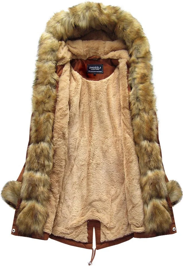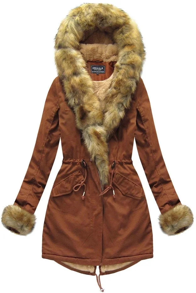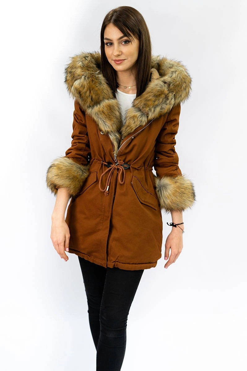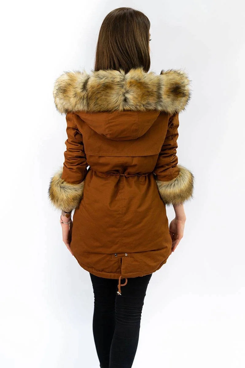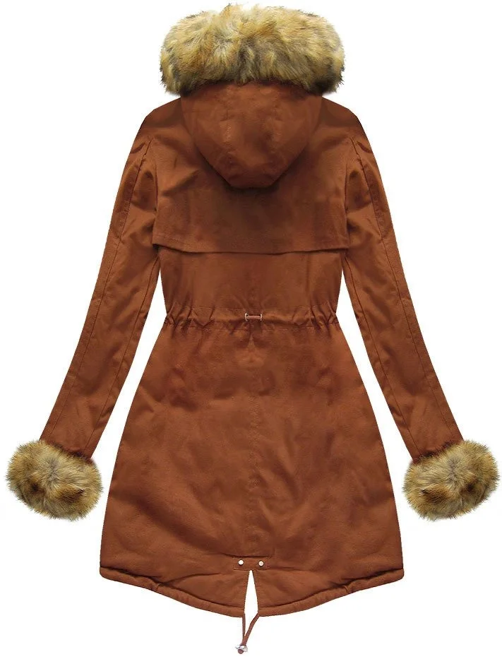 Přidání recenze k Bavlněná dámská zimní bunda parka v karamelové barvě s kožešinou (xw793x)