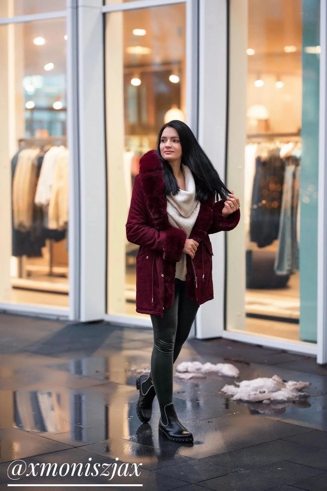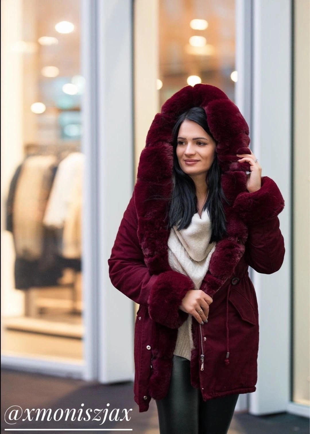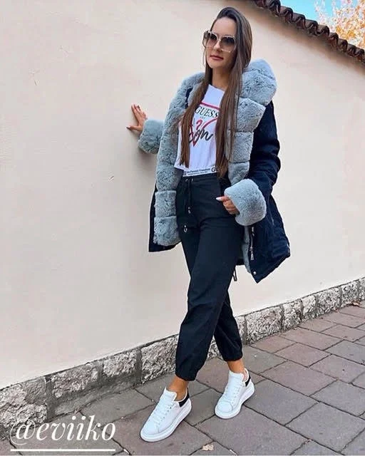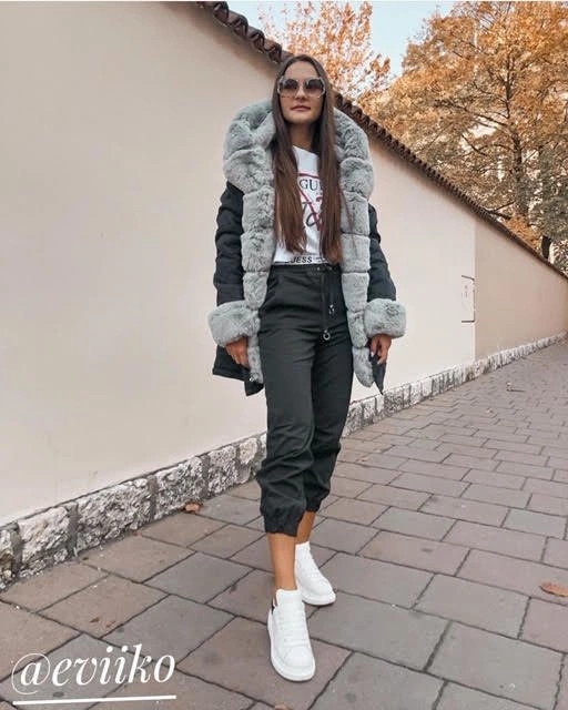 Bunda je zateplená syntetickou péřovou výplní, uvnitř je zateplená mechovitou kožešinovou podšívkou a má dvě kapsy. Model má kapuci, kterou není možné odepnout. Všechny kožešiny je možné odepnout. Na koncích rukávů jsou skryté stahovací lemy. V pase modelu jsou stahující šňůrky.