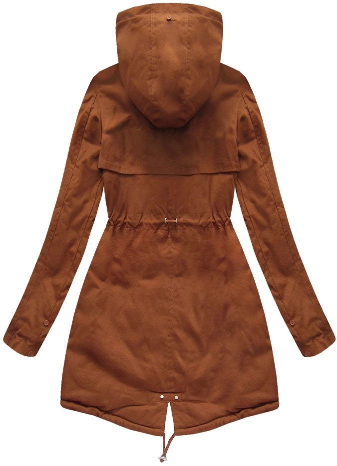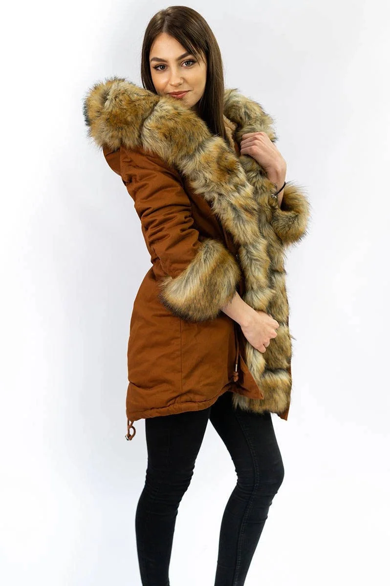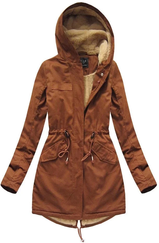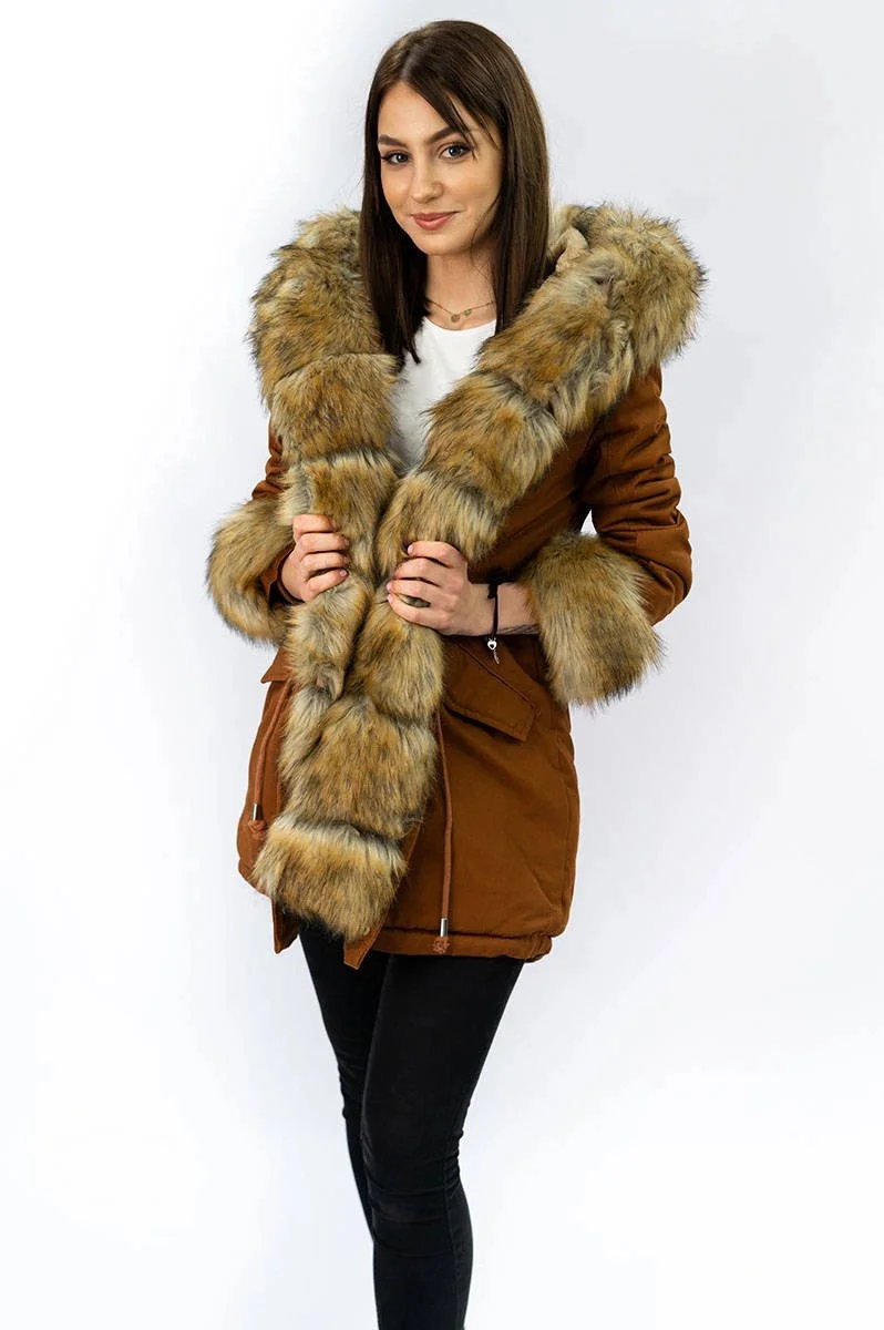 Bavlněná dámská zimní bunda parka v karamelové barvě s kožešinou (xw793x)