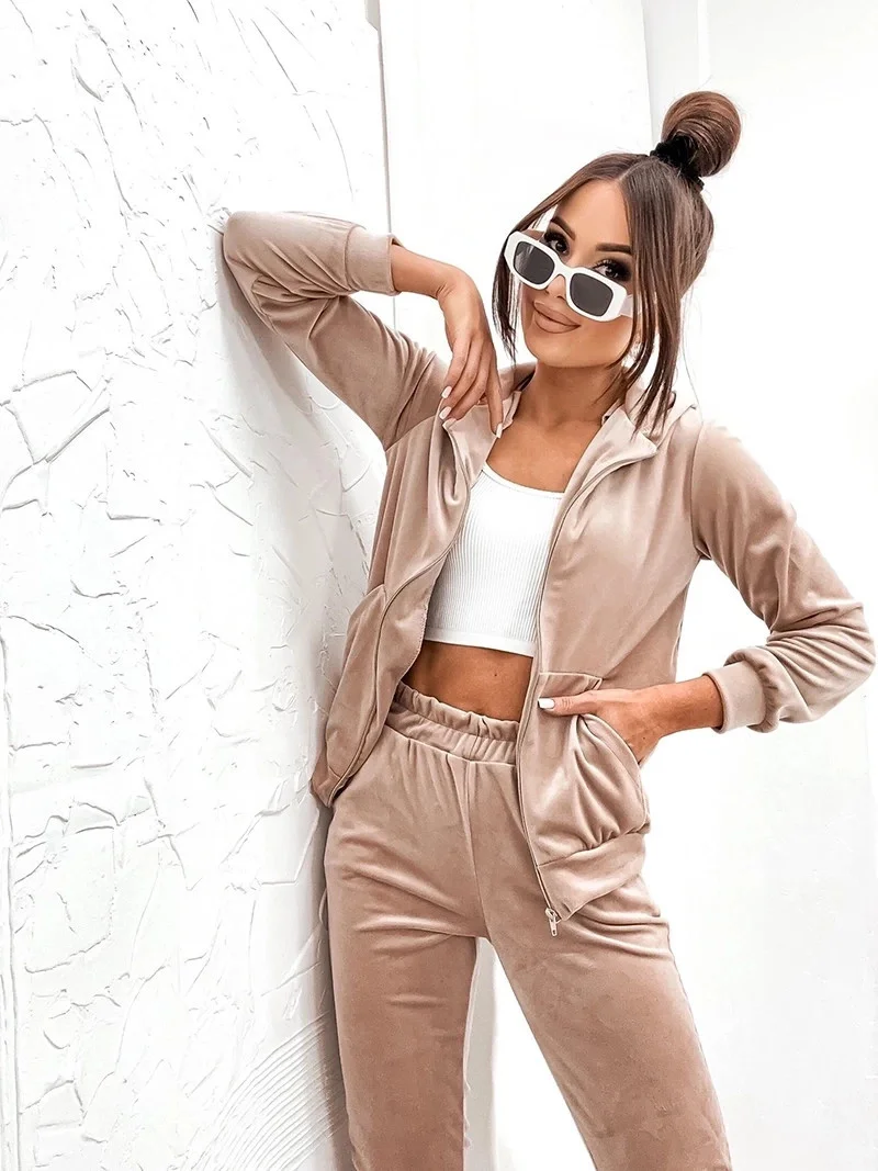 Béžová dámská tepláková souprava s rozepínací mikinou (829)