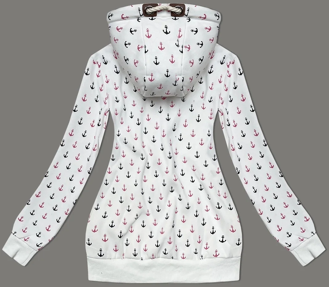 Bílá teplá rozepínací mikina se vzorem kotev (2307)