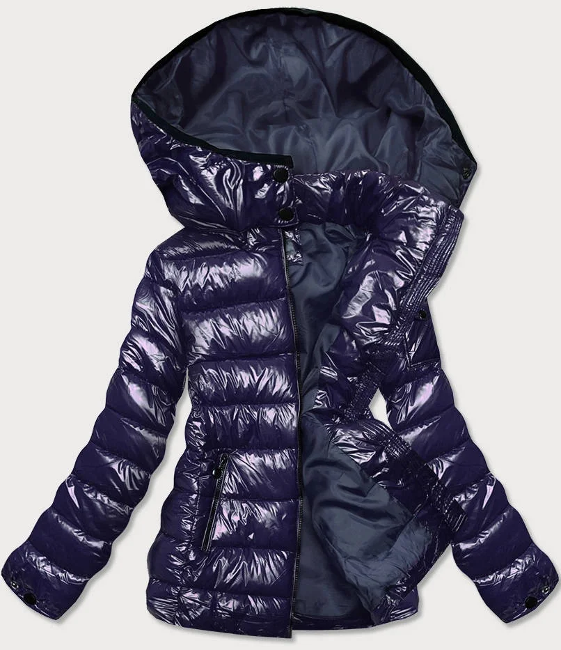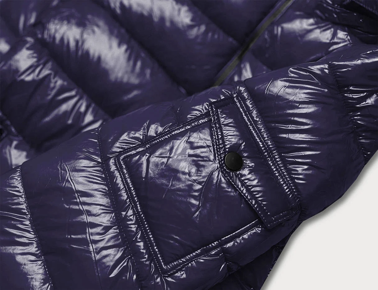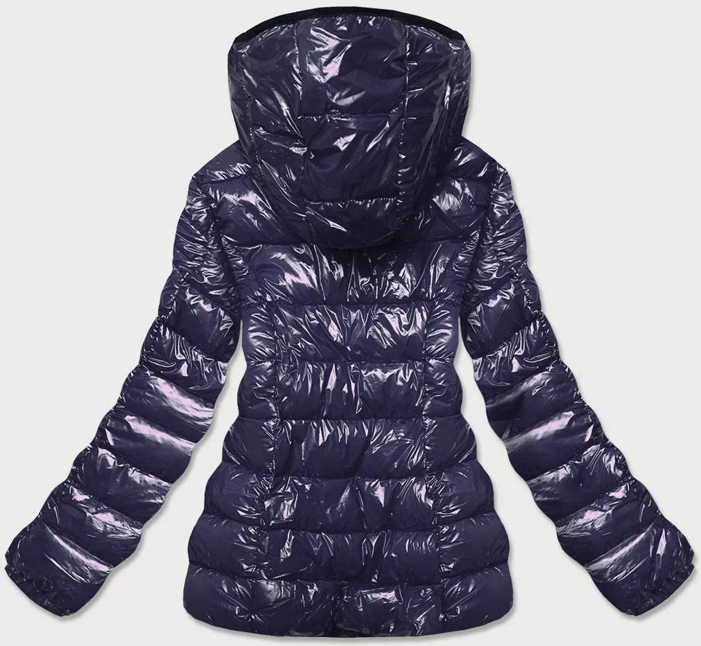 Tmavě modrá lesklá dámská zimní péřová bunda (b9583-3)