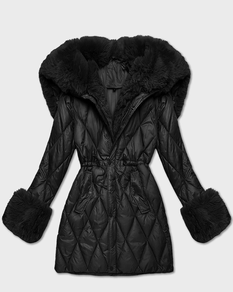 Přidání recenze k Černá bunda s kožešinovou kapucí, která tvoří límec (T3-2635#-1)