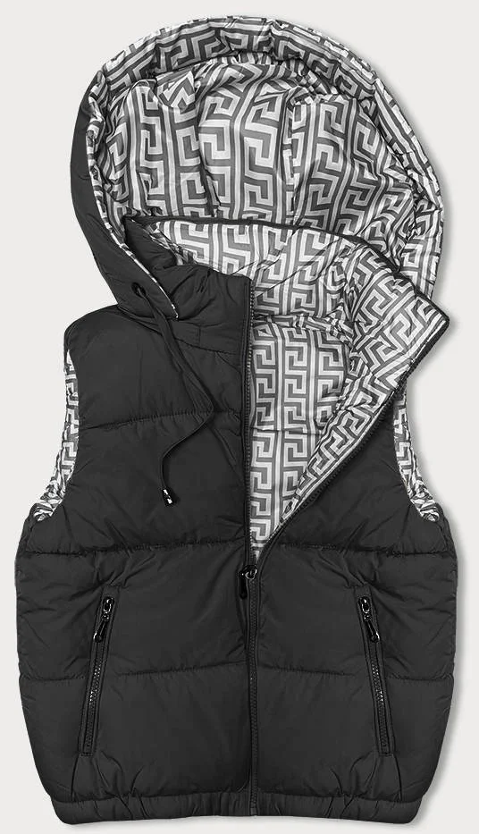 Černá krátká péřová dámská vesta s kapucí (16M9091-392)