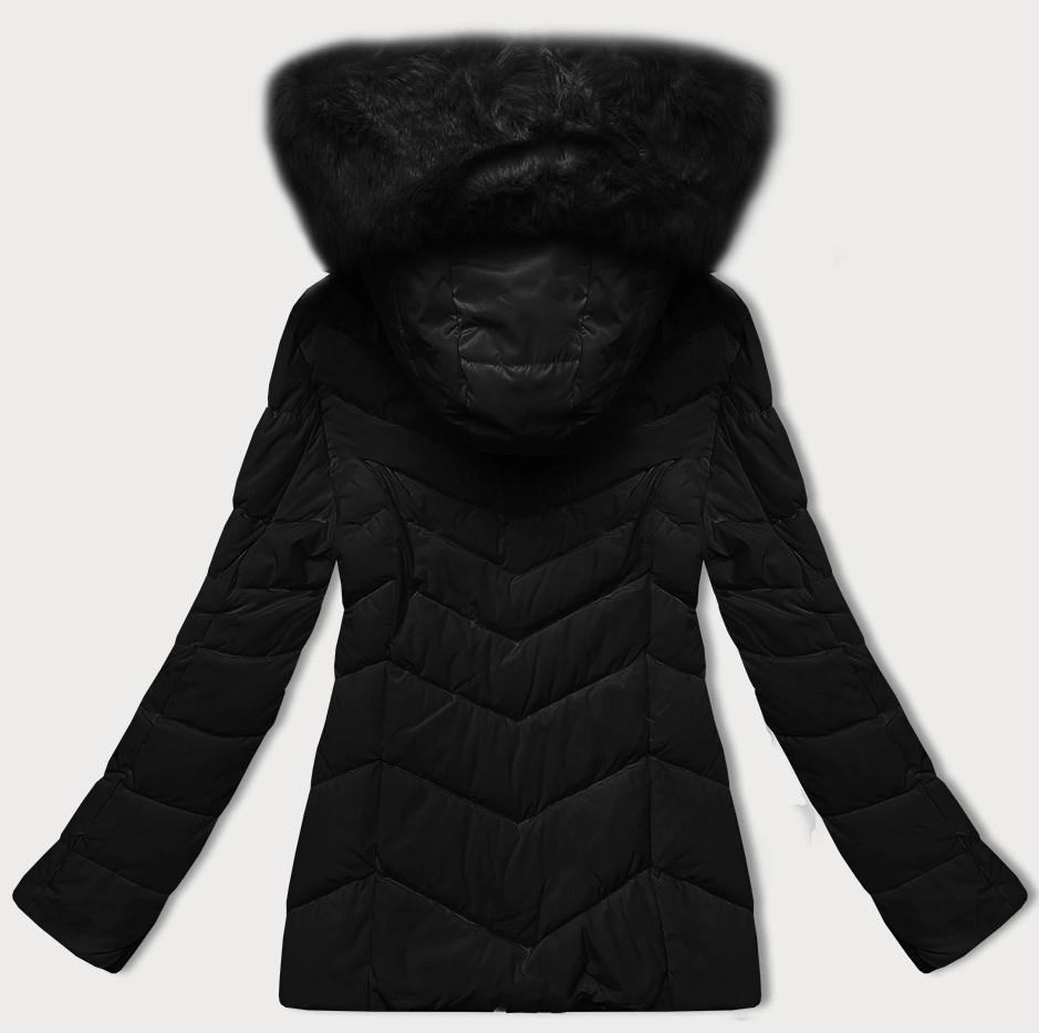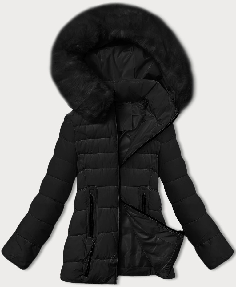 Černá prošívaná bunda pro přechodné období s kožešinou u kapuce S'west (B8301-1)