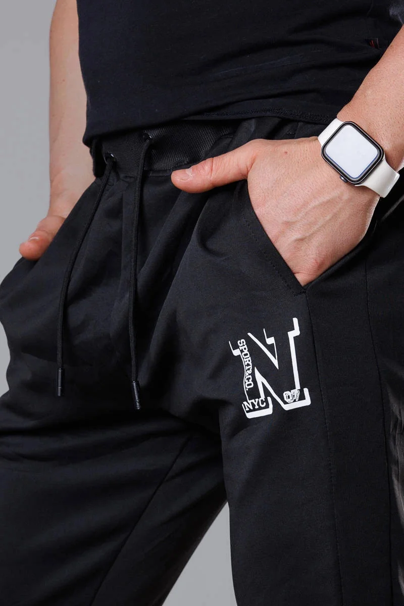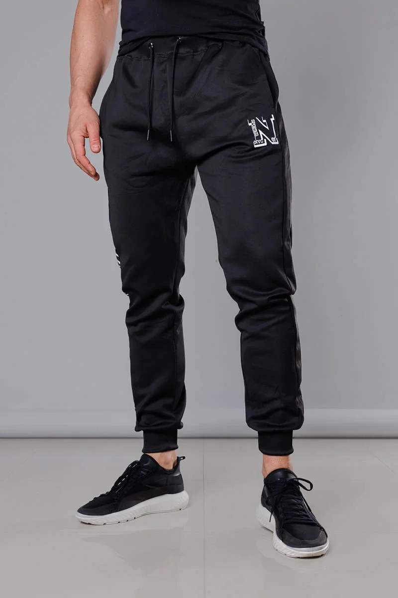 Černé pánské teplákové kalhoty s potiskem (8K178-3)