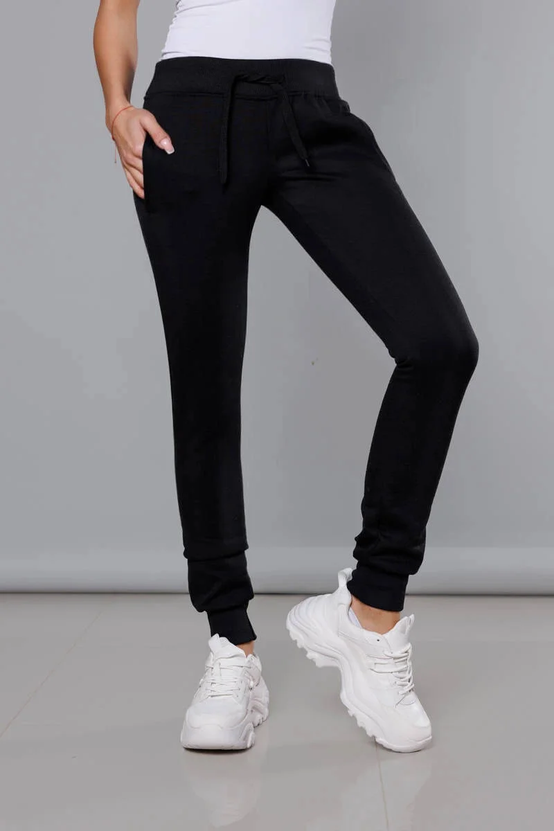 Kalhoty mají pružný pas se šňůrkami. Model má dvě kapsy. Nohavice lemují stahovací lemy.