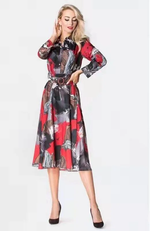 Černo-červené dámské košilové šaty v délce do poloviny lýtek Ann Gissy (XY202113(5))