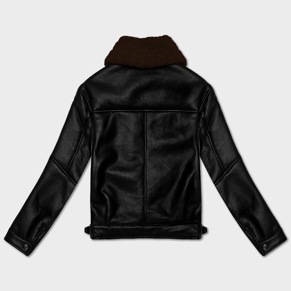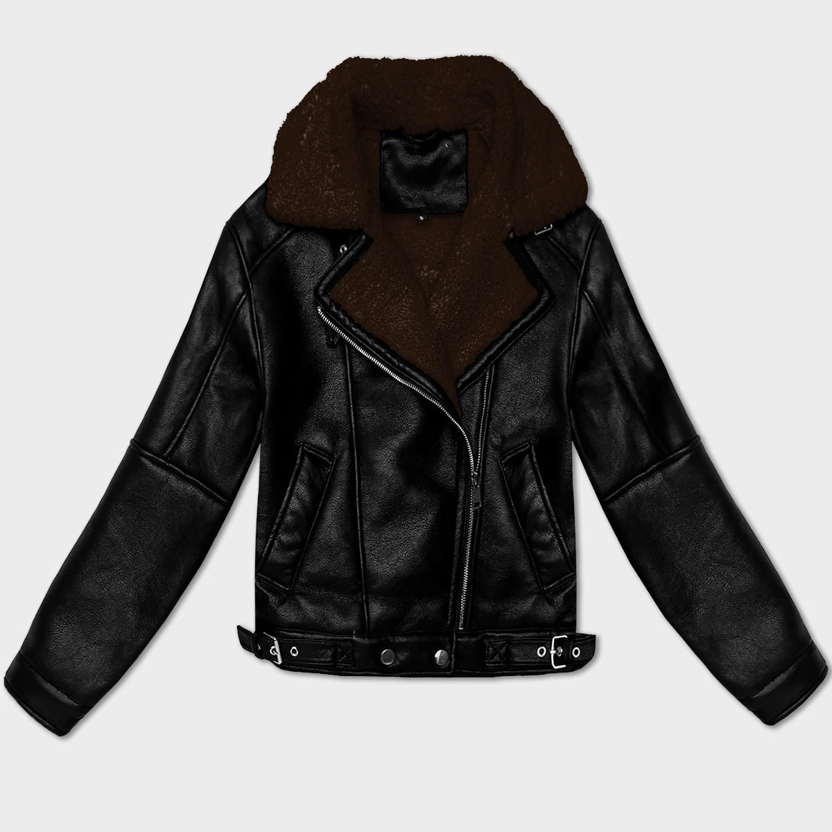 Černo-hnědá dámská kožená bunda s kožešinovou podšívkou pro přechodné období J Style (11Z8267)