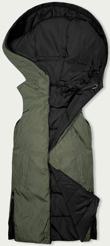 Černo-khaki dlouhá dámská oboustranná vesta (B8248-1)