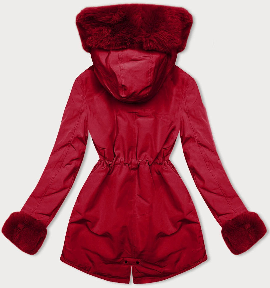Červená krátká zimní bunda parka s kožešinovou podšívkou (16M9062-270)