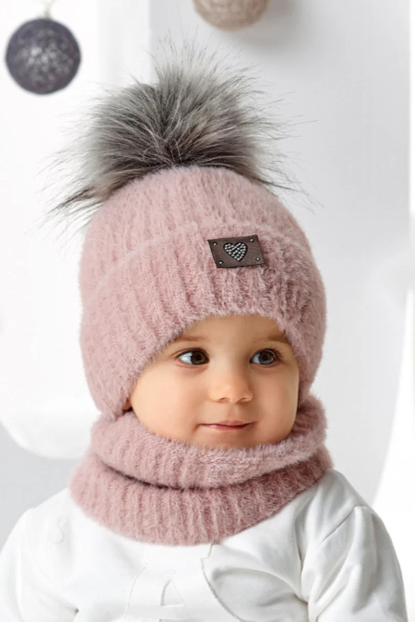 Dívčí souprava: čepice podšitá bavlnou + rolák. Materiál: 100% polyamid, podšívka: 95% bavlna, 5% elastan