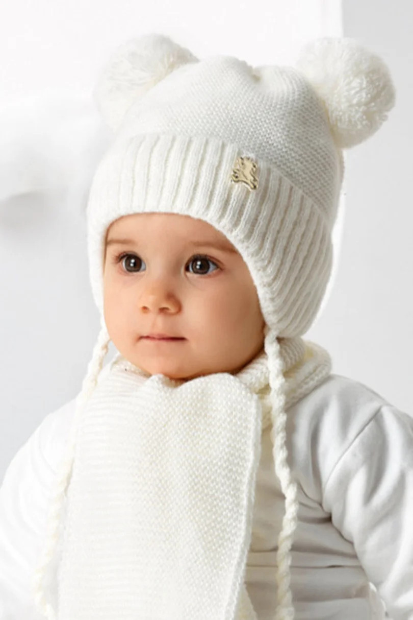 Dívčí sada: uzlíková čepice, podšitá bavlnou + šátek.