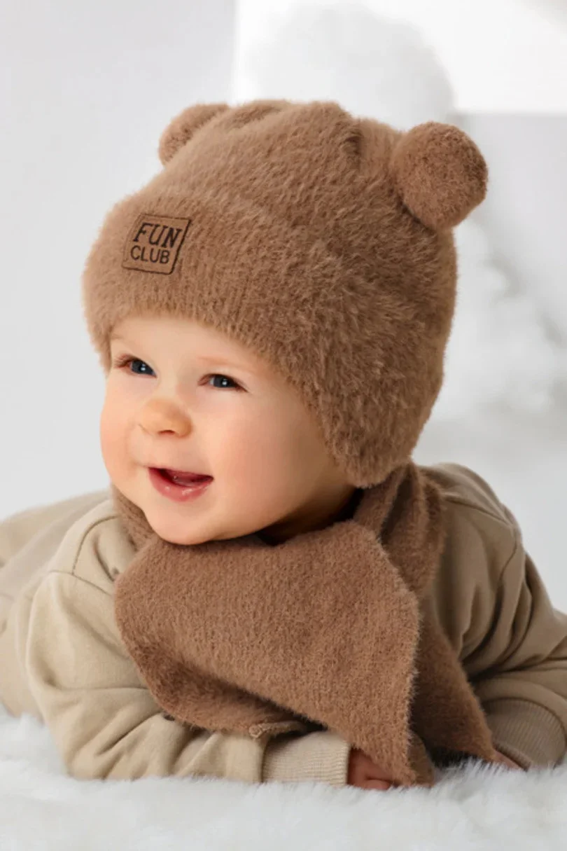 Chlapecká souprava z plyšové látky: čepice s bavlněnou podšívkou + šála