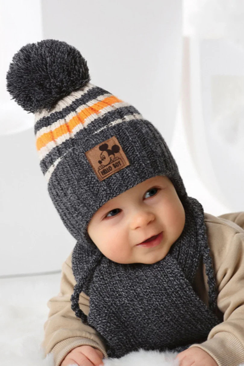 Chlapecká sada: čepice podšitá bavlnou + šátek