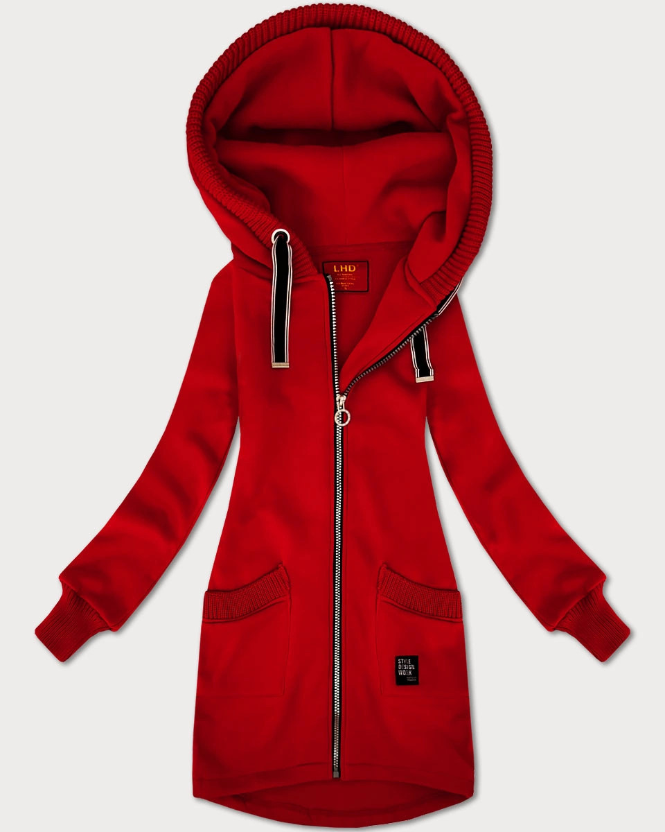 Přidání recenze k Červená dámská mikina se svetrovými vsadkami LHD (AMG-172A)