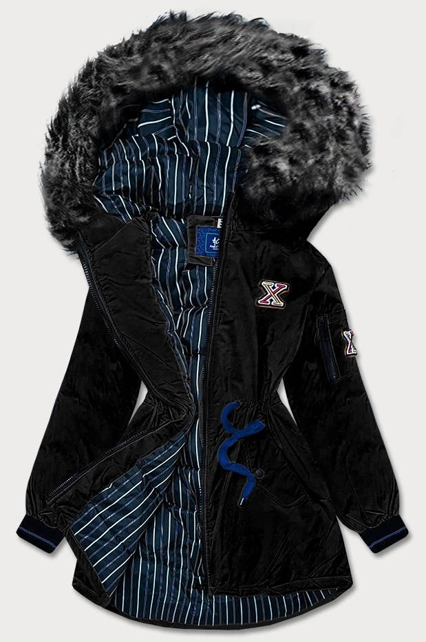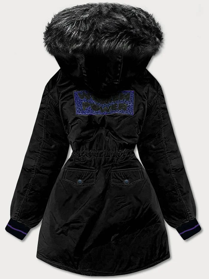 Černá delší dámská zimní bunda s kapucí (m8-757)