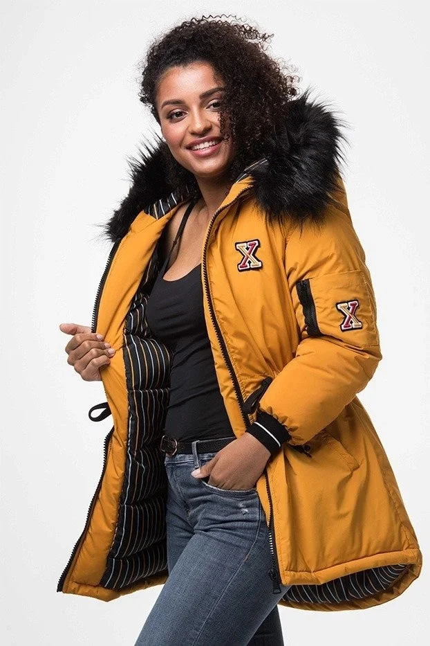 Přidání recenze k Černá delší dámská zimní bunda s kapucí (m8-757)