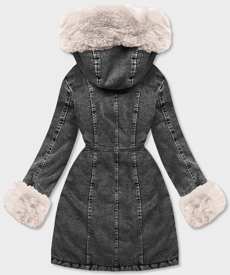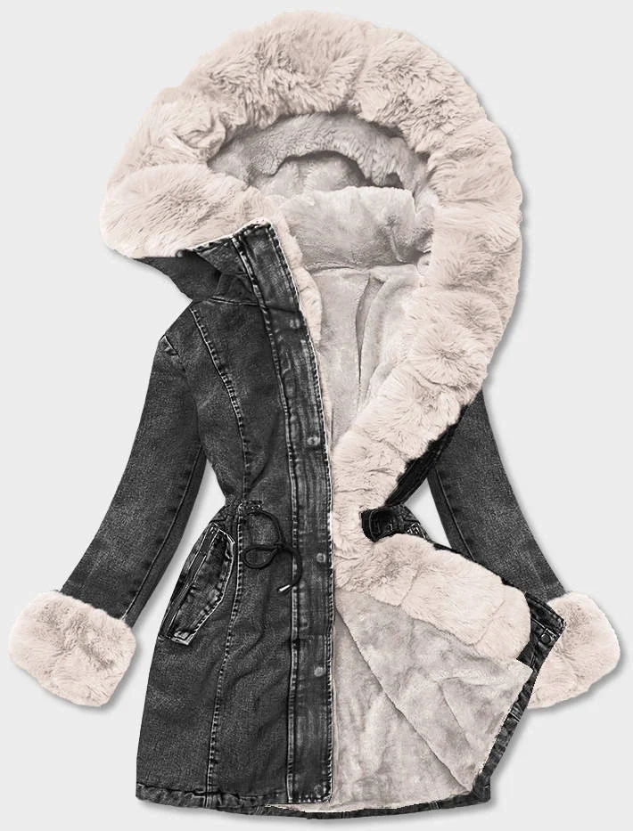 Přidání recenze k Černo/ecru dámská džínová bunda s kožešinovou podšívkou (B8068-1046)