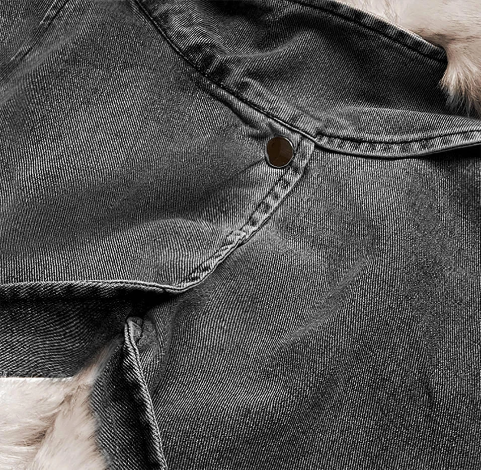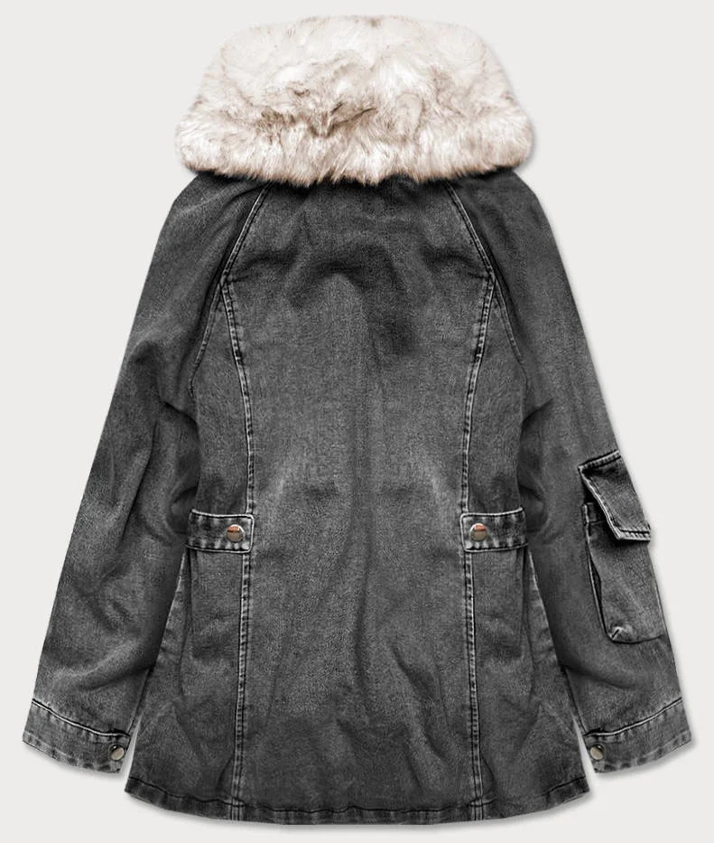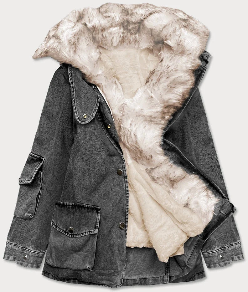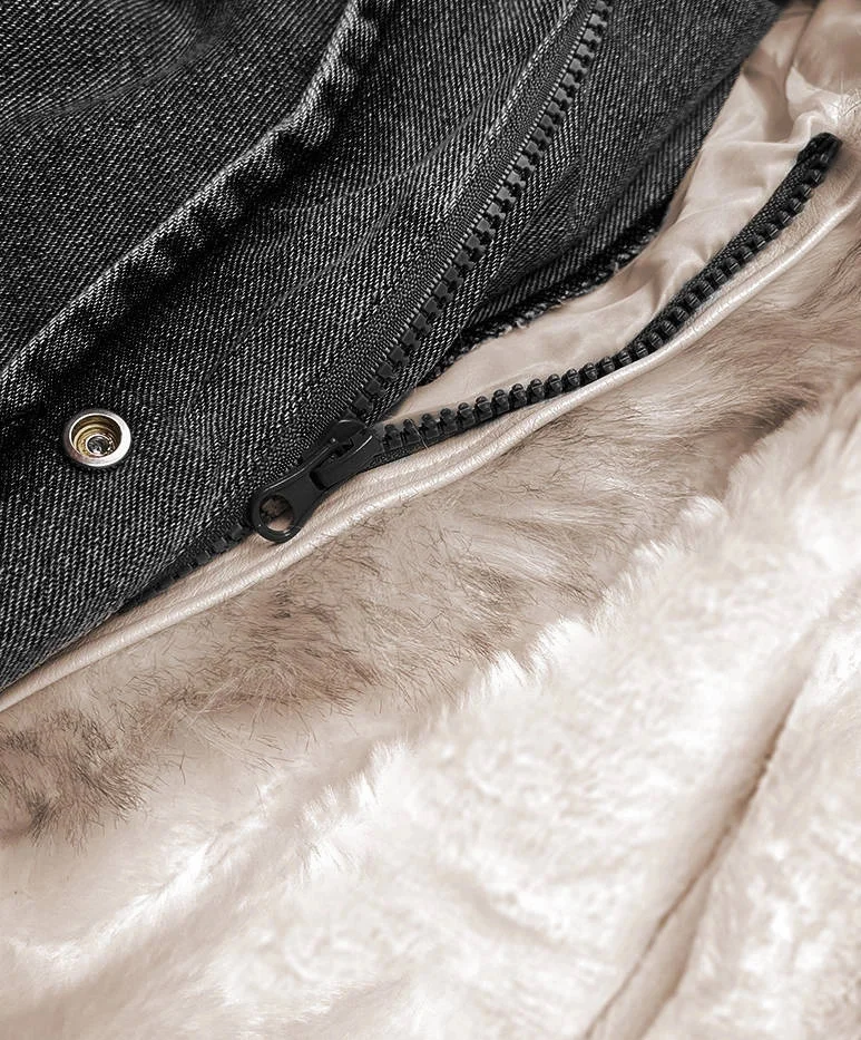 Přidání recenze k Černo/béžová dámská džínová bunda s kožešinovým límcem (br9585-1046)