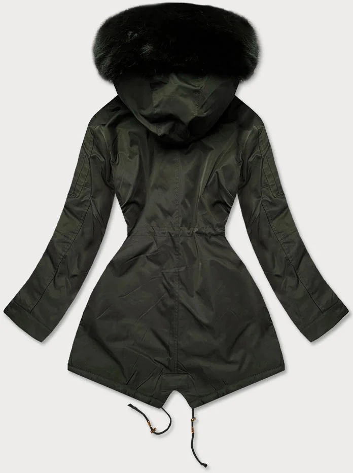 Dámská zimní bunda parka v barvě khaki s kapucí (b531-11)