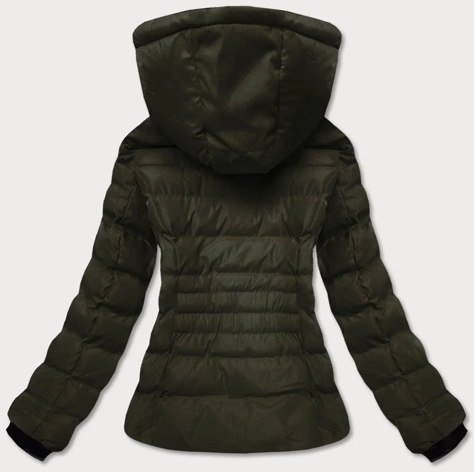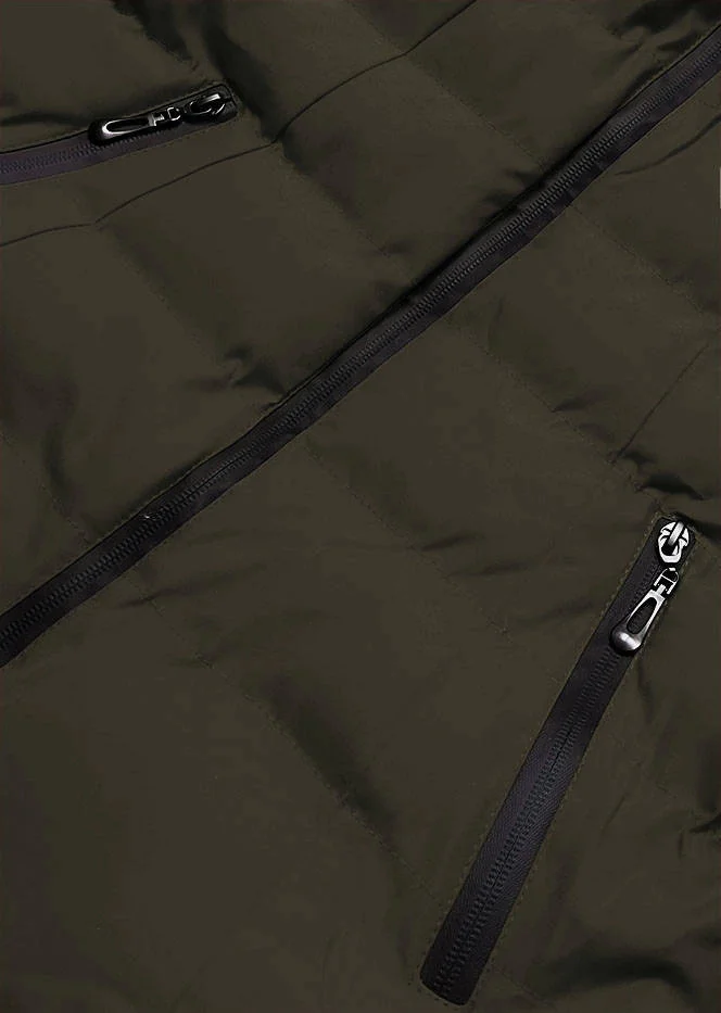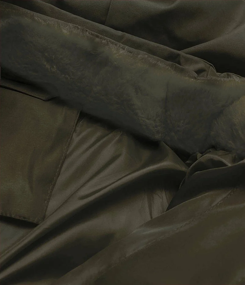 Dámská zimní bunda v army barvě s kožešinovým stojáčkem (5M769-136)