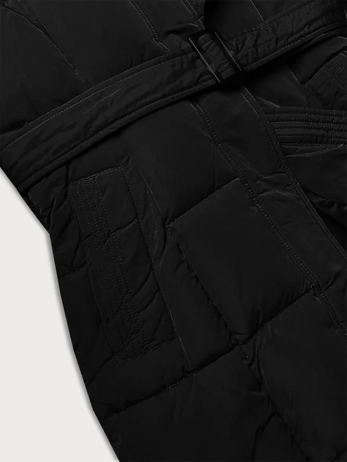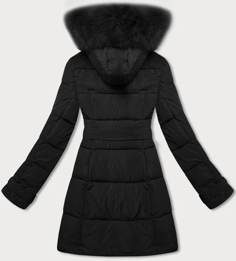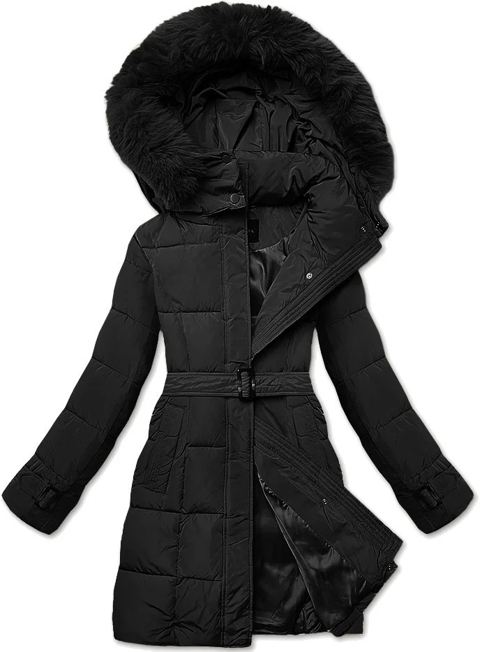 Černá dámská zimní bunda s ozdobnými páskami (23MY-208)
