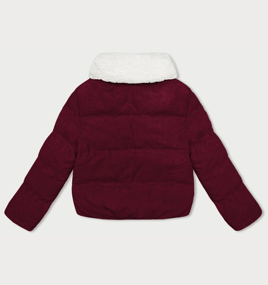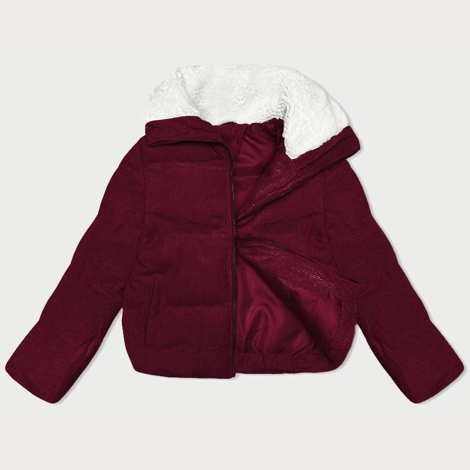 Dámská manšestrová bunda ve vínové bordó barvě s vysokým stojáčkem J Style (5M3230-1)