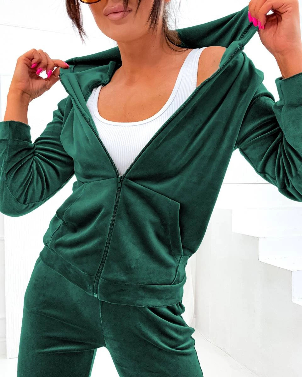Přidání recenze k Dámská tepláková souprava v lahvově zelené barvě s rozepínací mikinou (829)