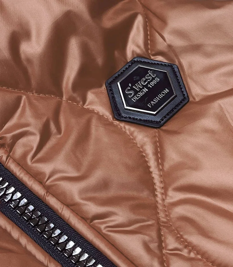 Dámská vesta v karamelové barvě s kapucí (B0130-22)