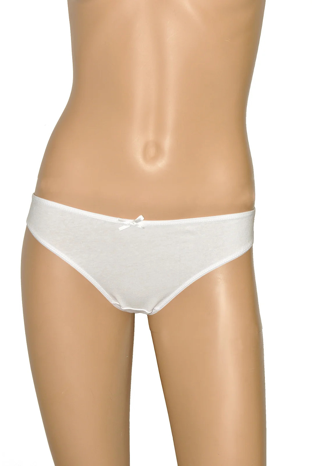 Klasické dámské kalhotky typu mini bikiny. Ušité z kvalitní bavlny. Balené jsou po třech kusech v igelitovém pytlíku. Barva bílá.