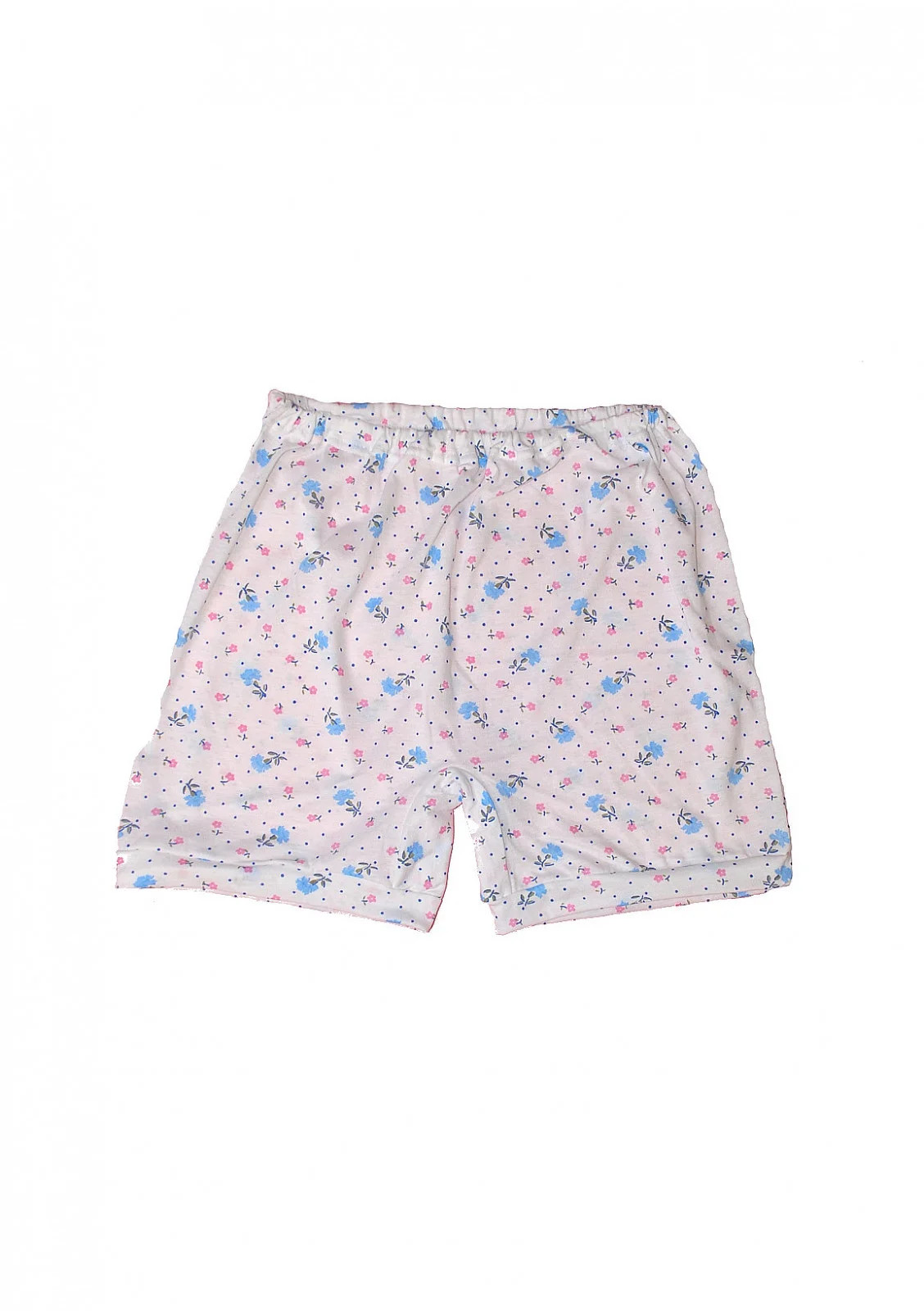 Dámské kalhotky s nohavičkami, které jsou vyrobené z bavlněné látky s barevnými květinkami.