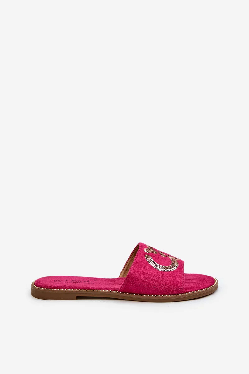 Dámské ploché pantofle s flitry S.Barski Fuchsia