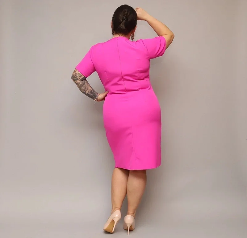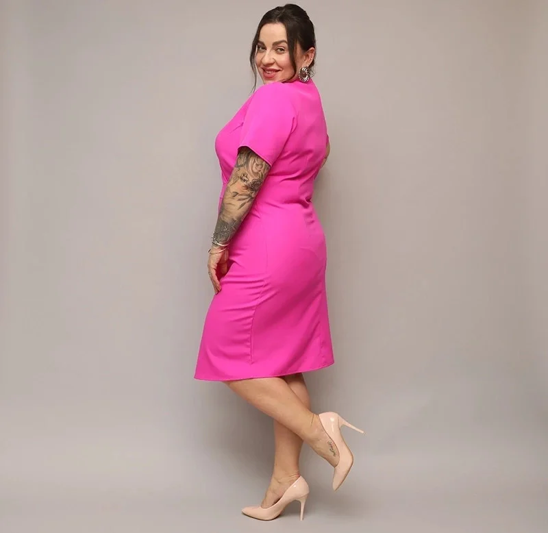Dámské přeložené obálkové šaty ve fuchsijové barvě v délce ke kolenům (743)