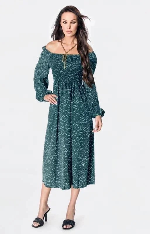 Dámské puntíkované šaty ve španělském stylu v mořské barvě s dlouhými rukávy Ann Gissy (DLY016)