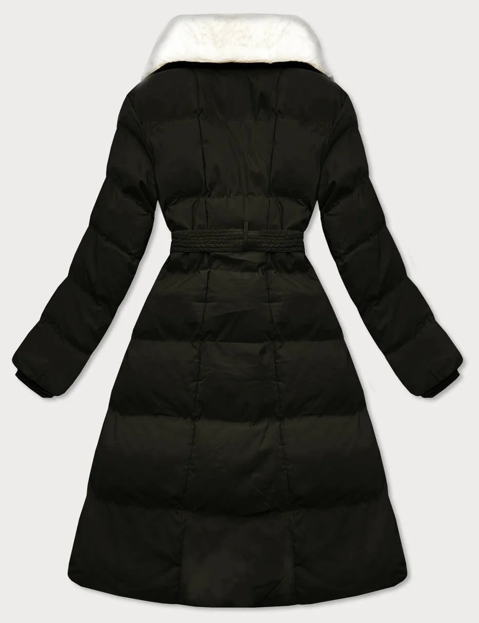 Dámský zimní kabát v barvě army s kožešinovým límcem J Style (16M9168-136)