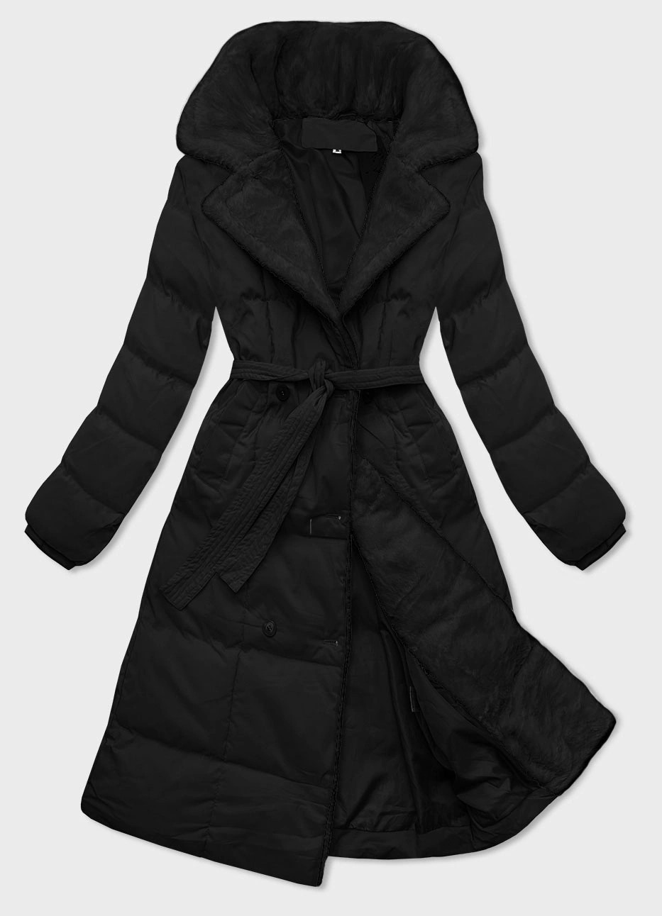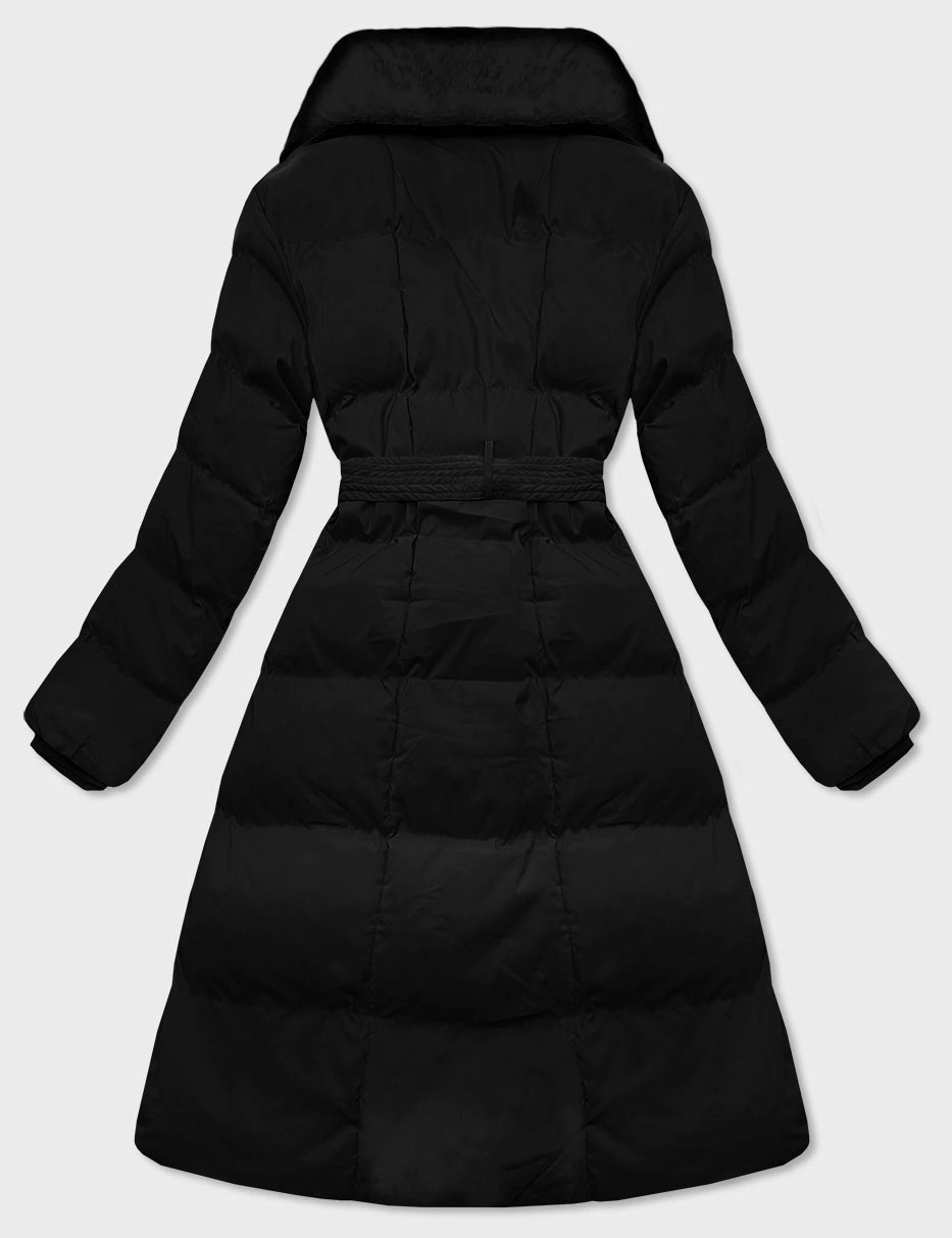 Černý dámský zimní kabát s kožešinovým límcem J Style (16M9168-392A)