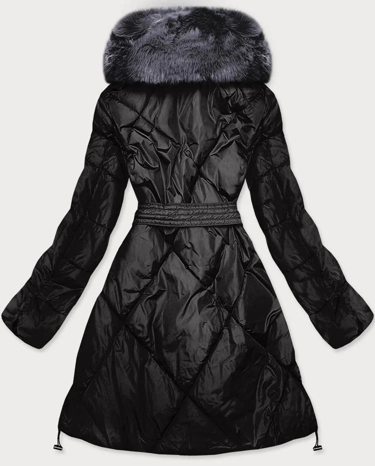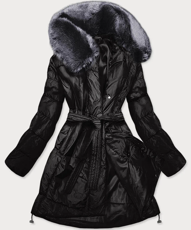 Přidání recenze k Černý dámský zimní kabát s kožešinou (008)