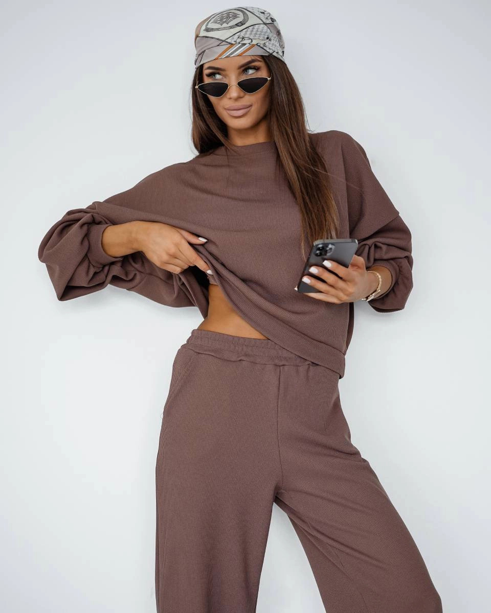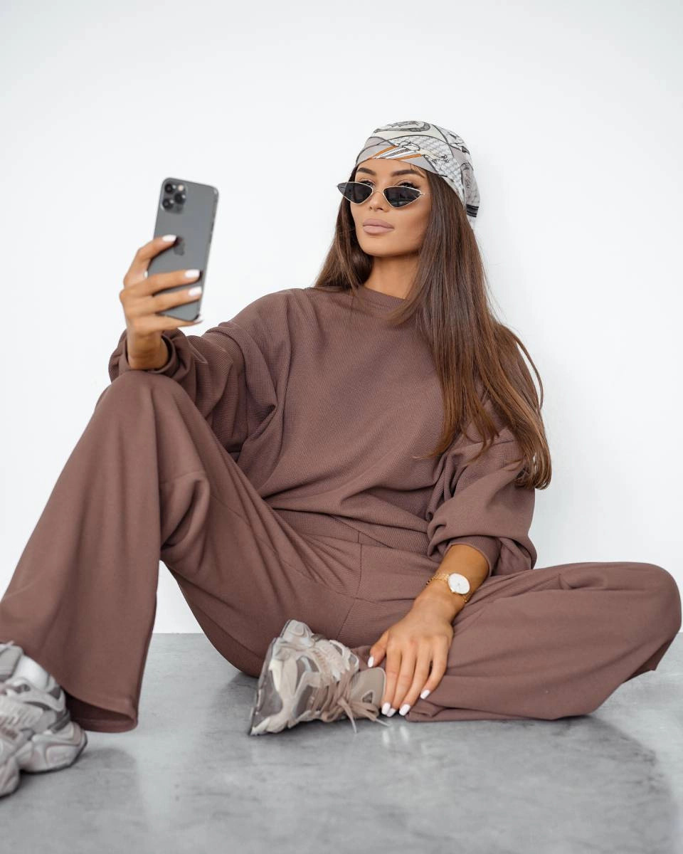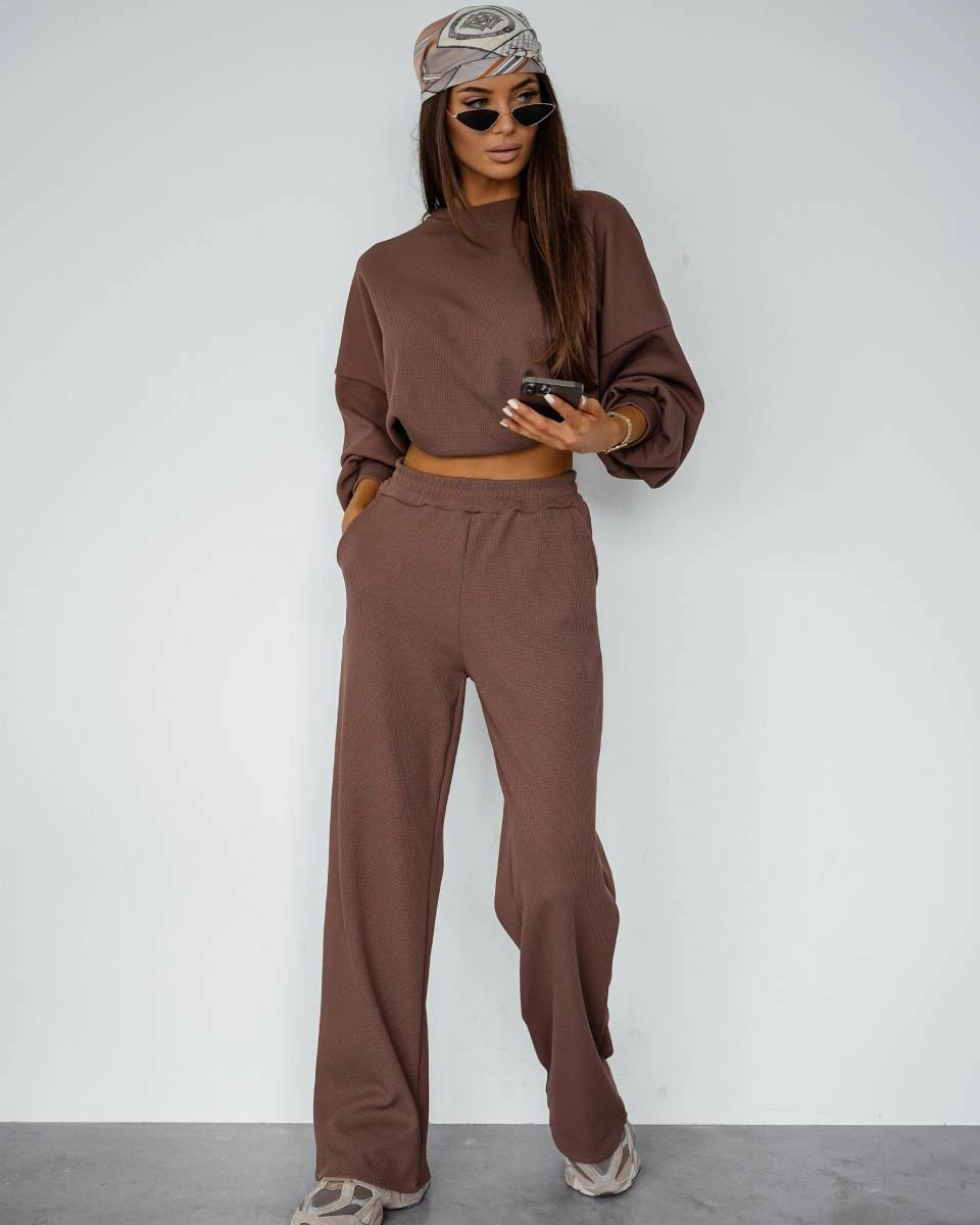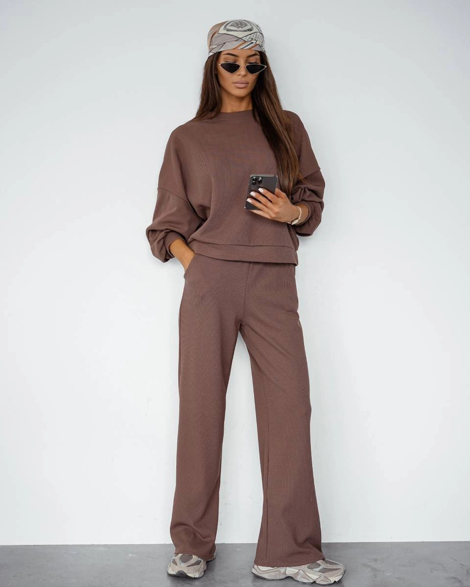 Dámský komplet s vaflovou strukturou v barvě cappuccino - mikina a kalhoty (821108)