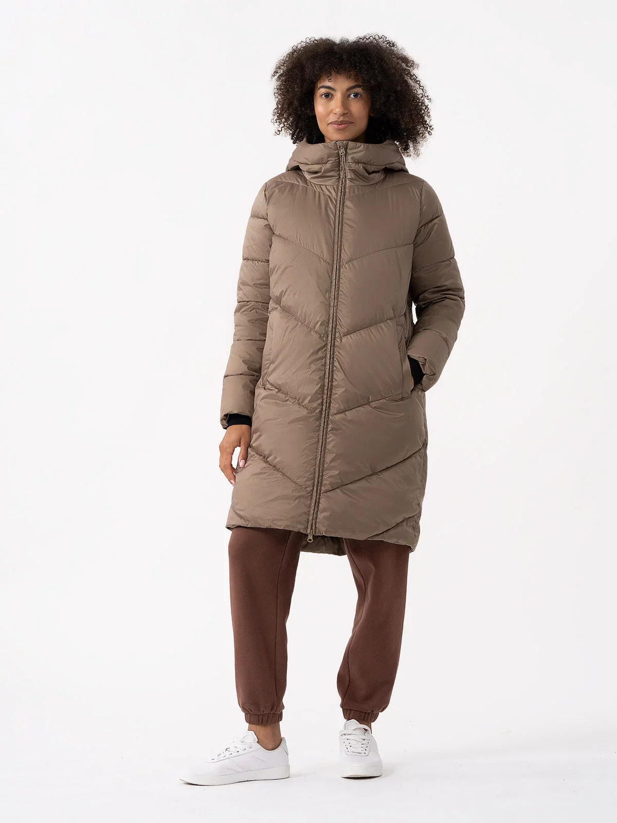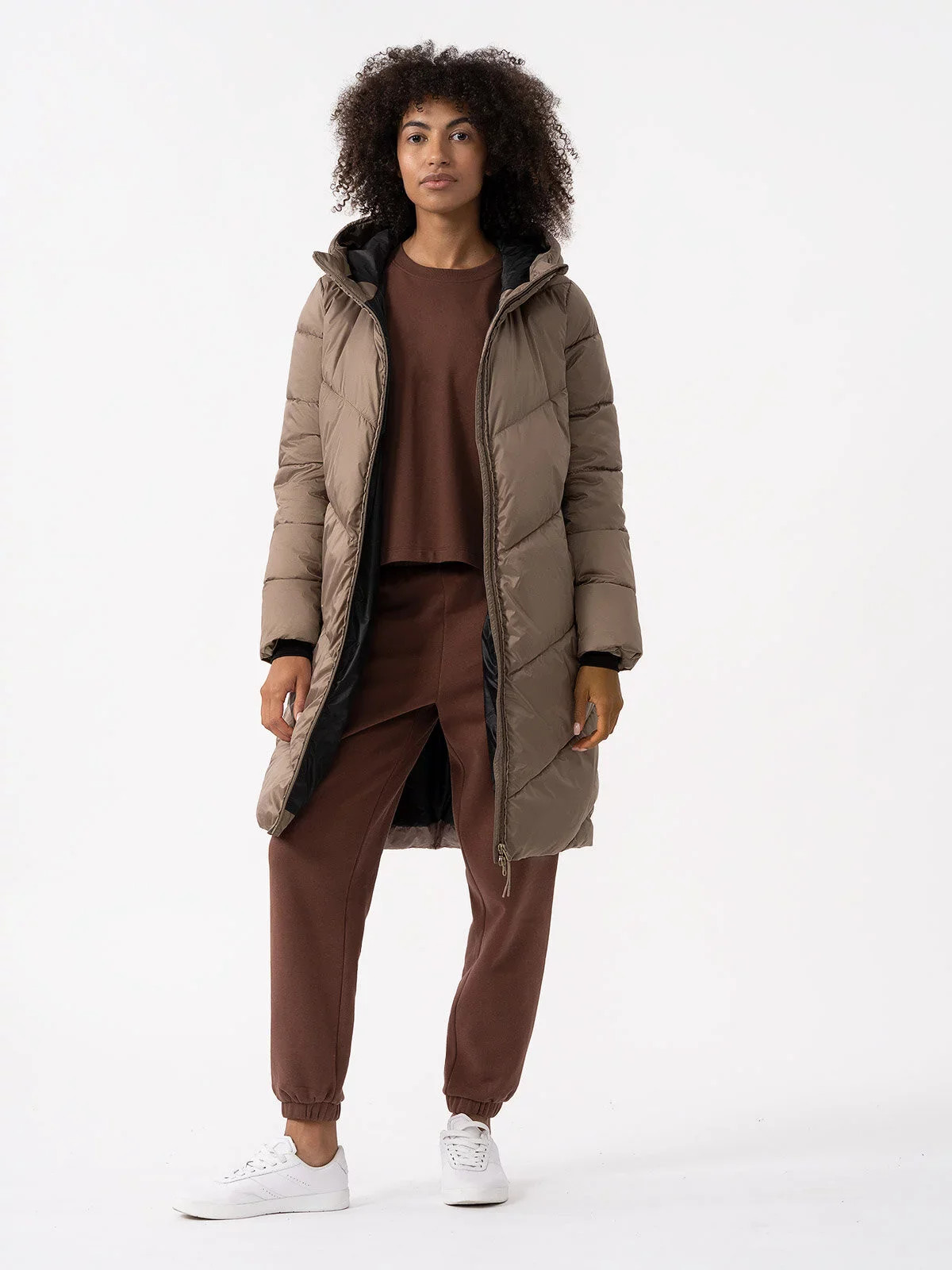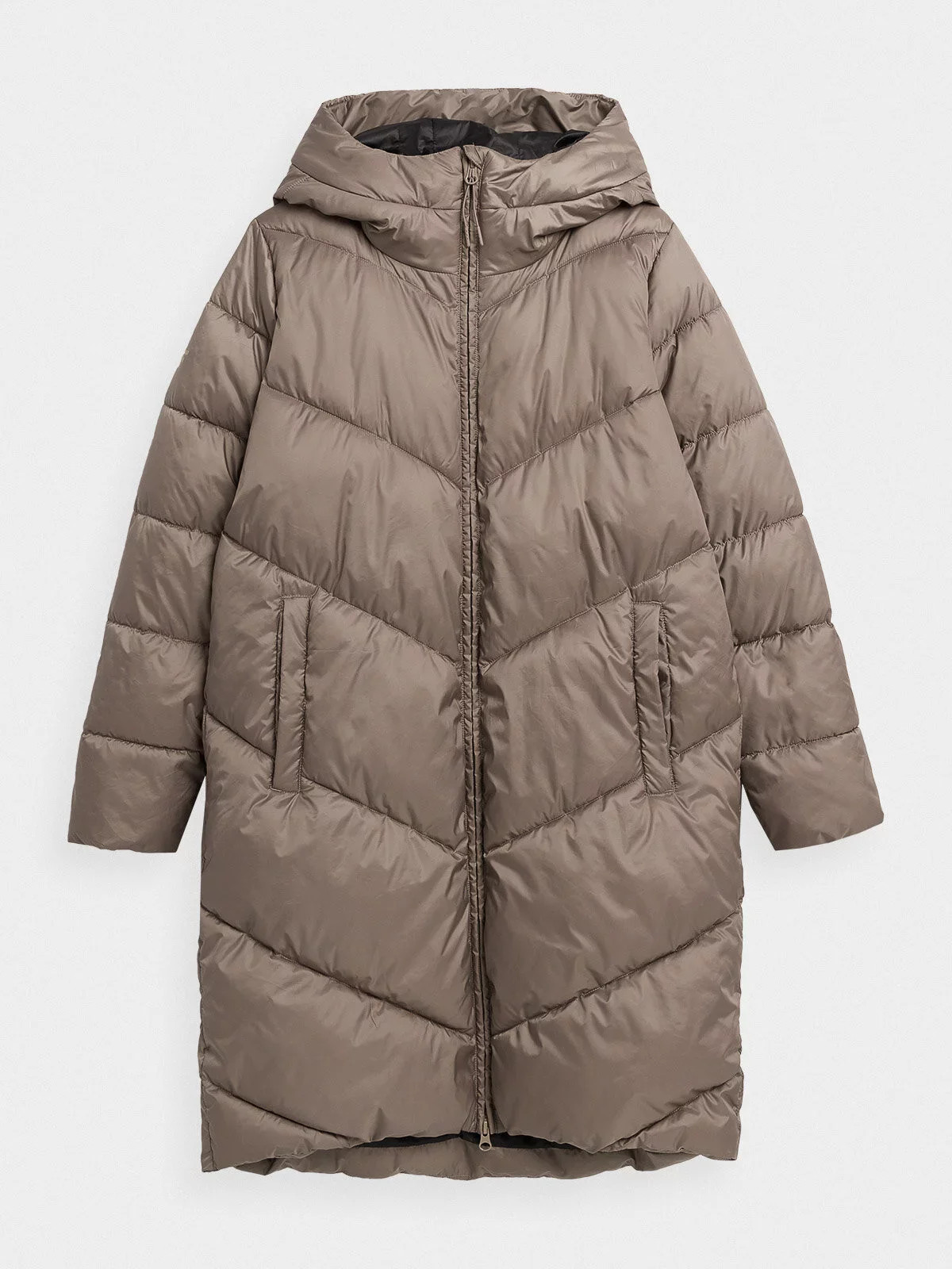 Dámský péřový kabát s výplní ze syntetického peří, díky čemuž zajišťuje optimální tepelný komfort v přechodném období. Kabát má dodatečný impregnační povlak, který chrání proti nadměrné absorpci vlhkosti zvenčí.