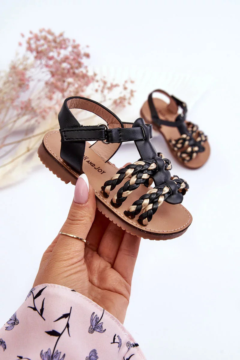 Dětské sandály na suchý zip s pruhy Černá Sammy