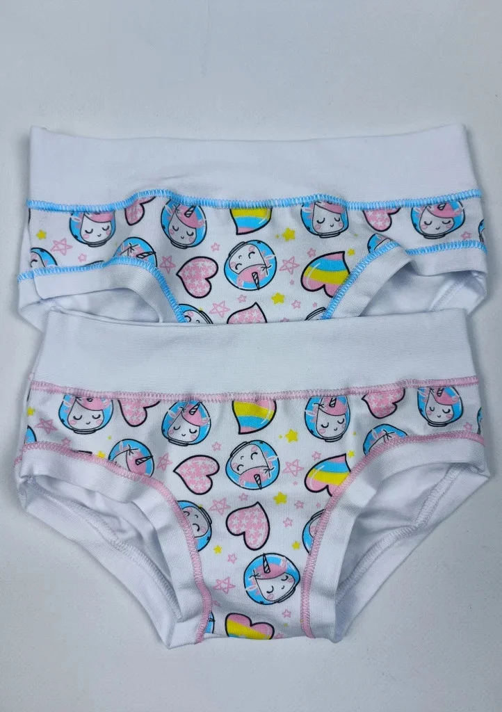 Dívčí kalhotky italské značky jsou z pružného materiálu s vyšším pasem. Horní a boční lem je volně přeložený, proto krásně sedí a nikde se nezařezávají. Do vnitřního dílu je jemně zapracován malý klínek. Barvu si můžete zvolit při objednávce, nebo bude zvolena náhodně. Uvedená cena je za jeden kus. Jsou baleny v dárkové krabičce.