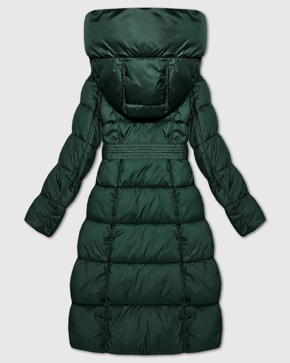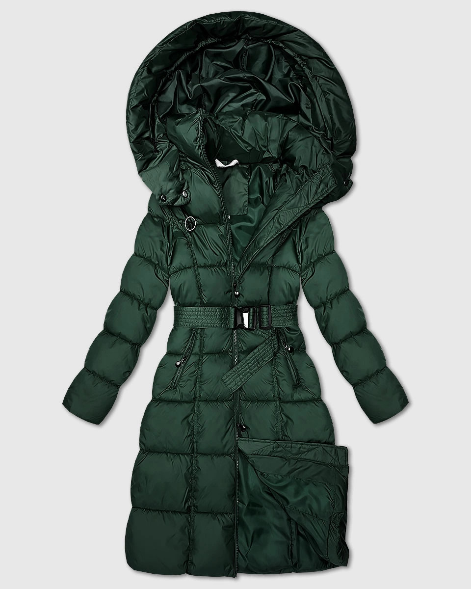 Tmavě zelená dlouhá a hrubší zimní bunda s opaskem Minority (P3-6033-33)