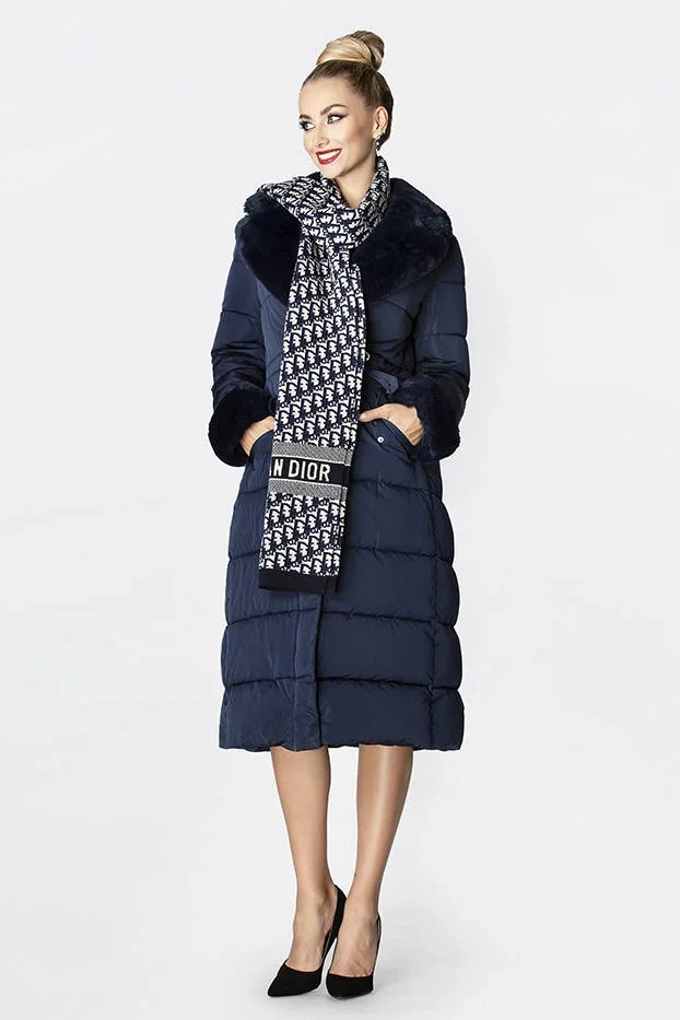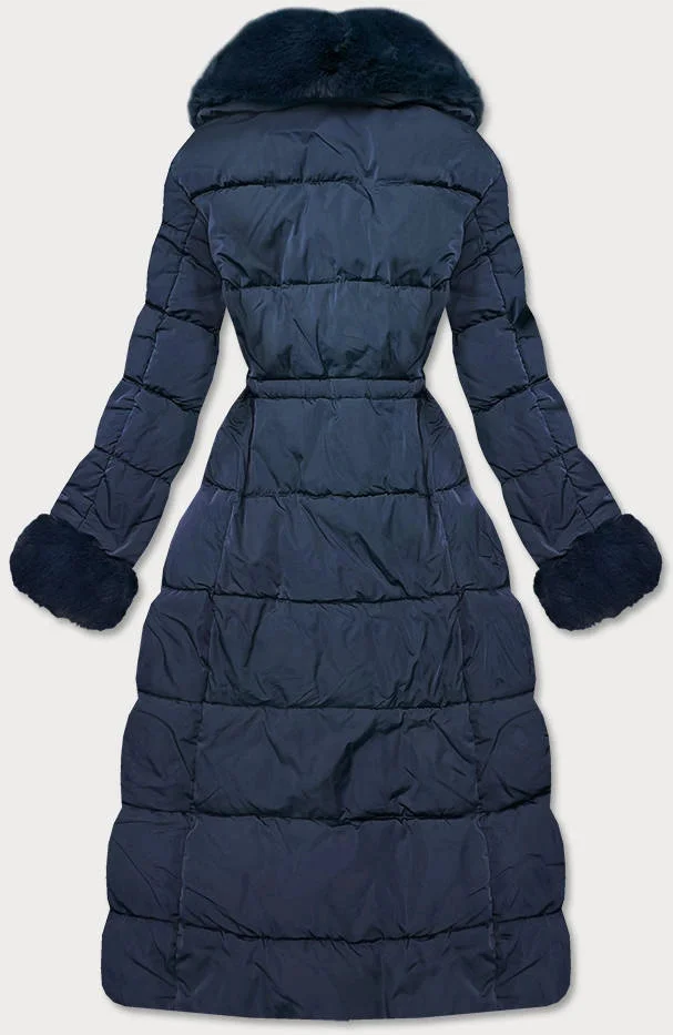 Tmavě modrá dlouhá zimní bunda s kožešinovým límcem (j9-071)