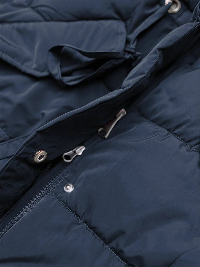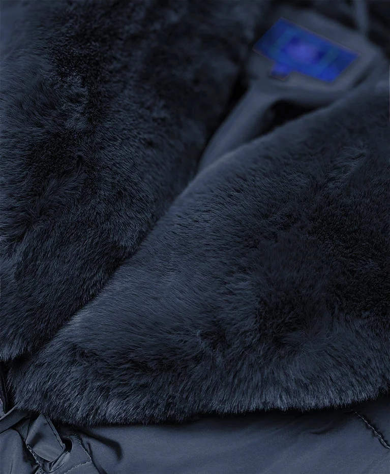 Přidání recenze k Tmavě modrá dlouhá zimní bunda s kožešinovým límcem (j9-071)