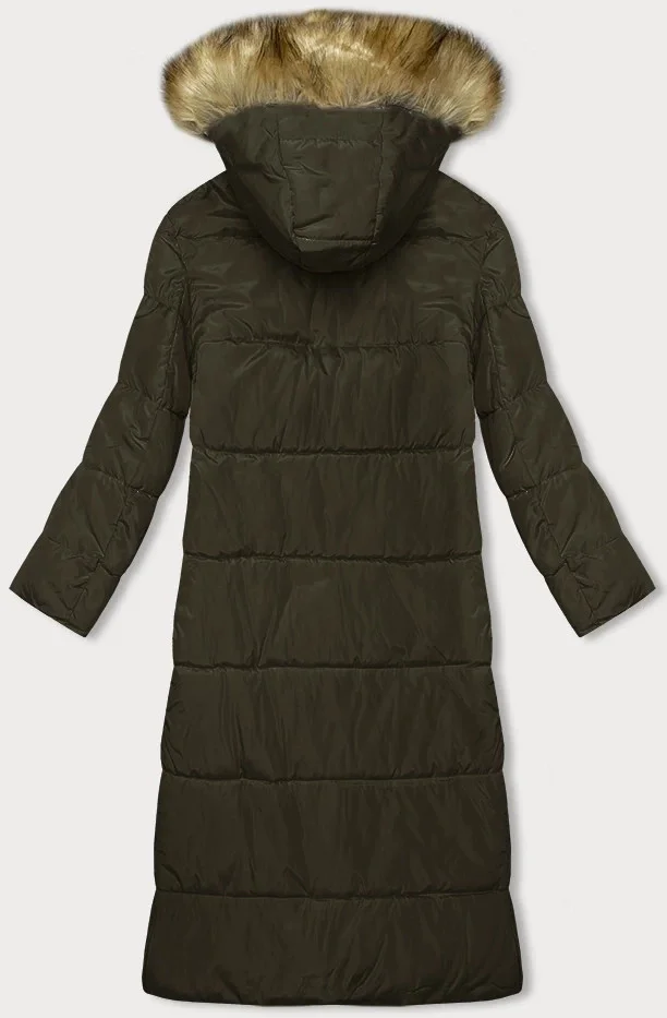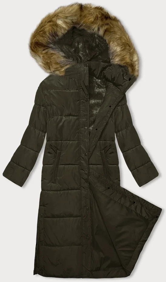 Dlouhá zimní bunda v khaki barvě s kapucí (V726)