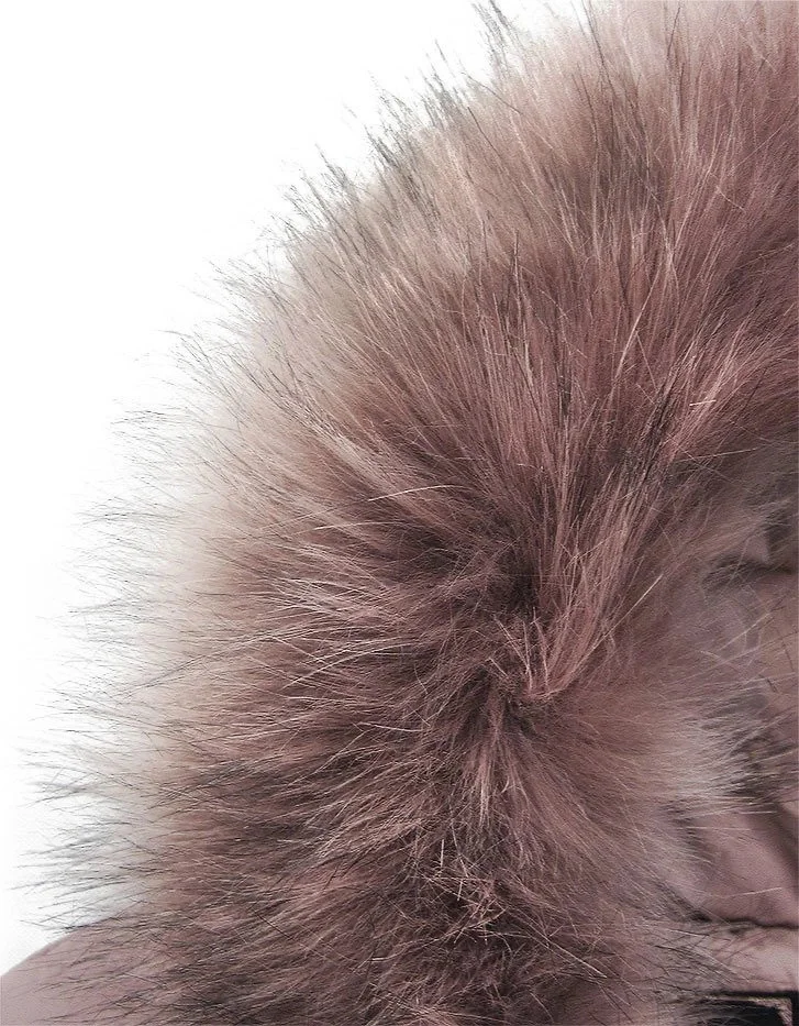 Dlouhá dámská zimní prošívaná bunda ve starorůžové barvě s kapucí (7751BIG)
