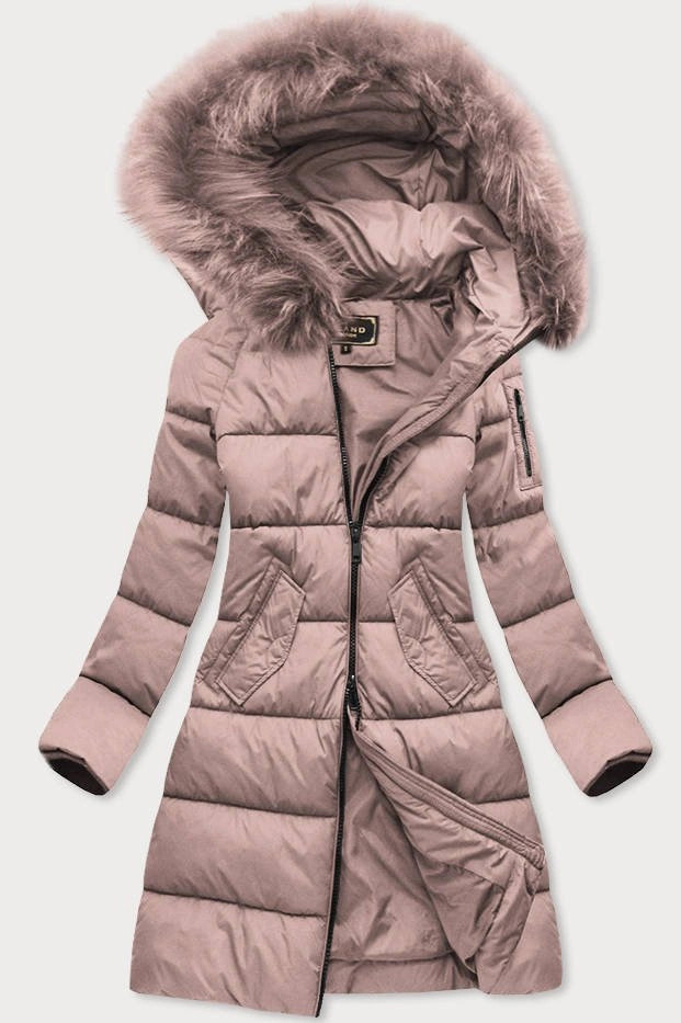 Přidání recenze k Dlouhá dámská zimní prošívaná bunda ve starorůžové barvě s kapucí (7751BIG)